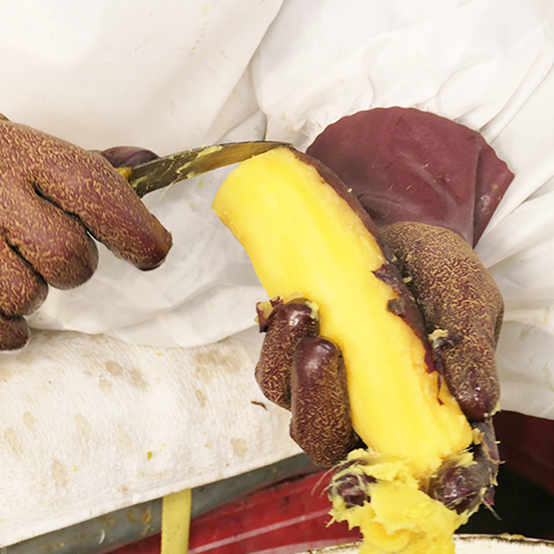 干し芋が持つ天然の甘さ、そして黄金色に輝く色を最大限引き出せるよう加工時には蒸かす温度や時間を細かく管理。